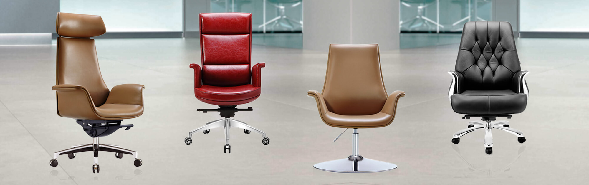 – Variety of chair types: high back, medium back, executive manager, and visitor